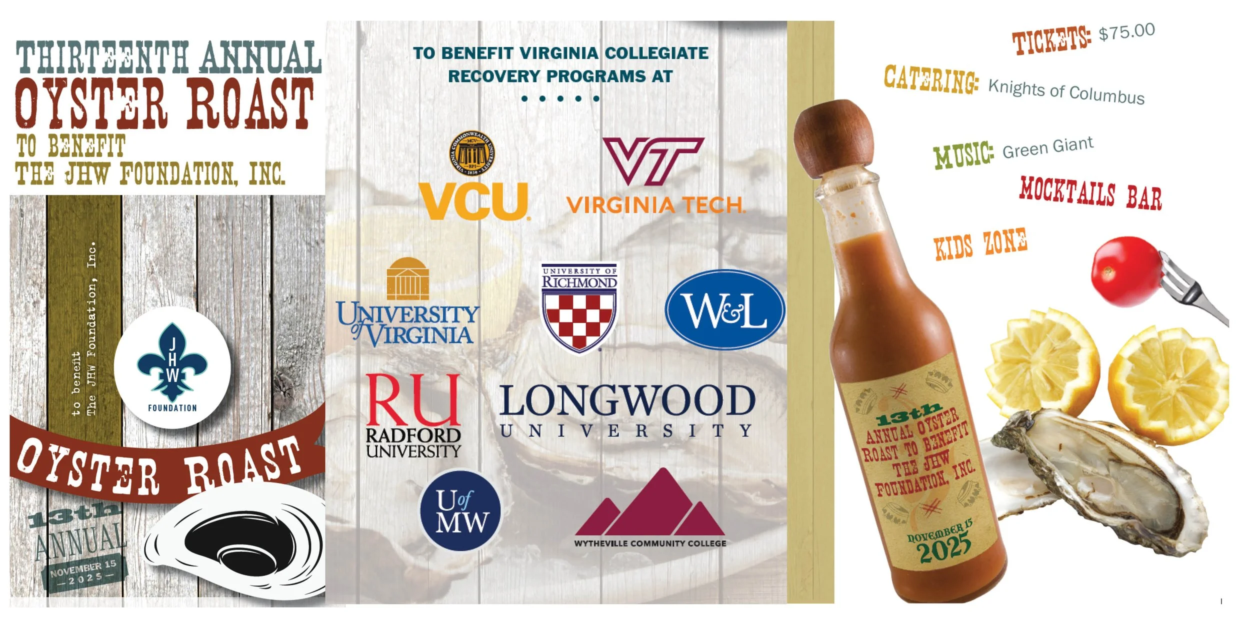 Please join us at Deep Run Hunt Club on Saturday November 12th for the 10th Annual Oyster Roast to Benefit the JHW Foundation! Register for the 10th Annual JHW Foundation Oyster Roast!